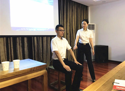 圖為現場演練坐姿