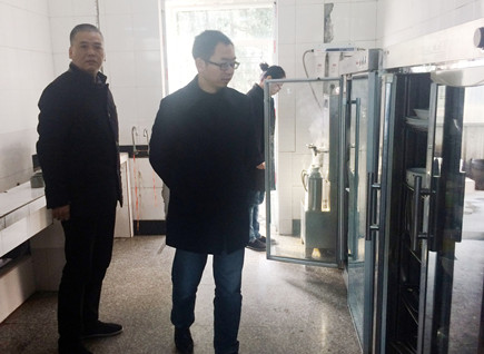 圖為副總經理董阿林在檢查員工食堂