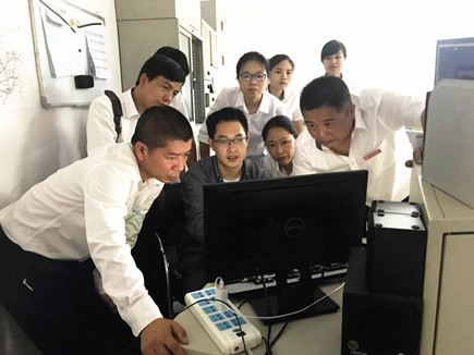 圖為學習人員在監控室學習操作新系統