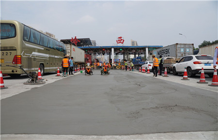 這次維修以根治病害為出發點,對損壞路面進行銑刨,對路基進行注漿,基層補強,安放鋼筋網,澆筑混凝土,養護后進行標線恢復。工程的順利實施有效地解決了溫嶺西車道屢修屢破的難題,提高了溫嶺西收費站車道行車安全性和通行率。