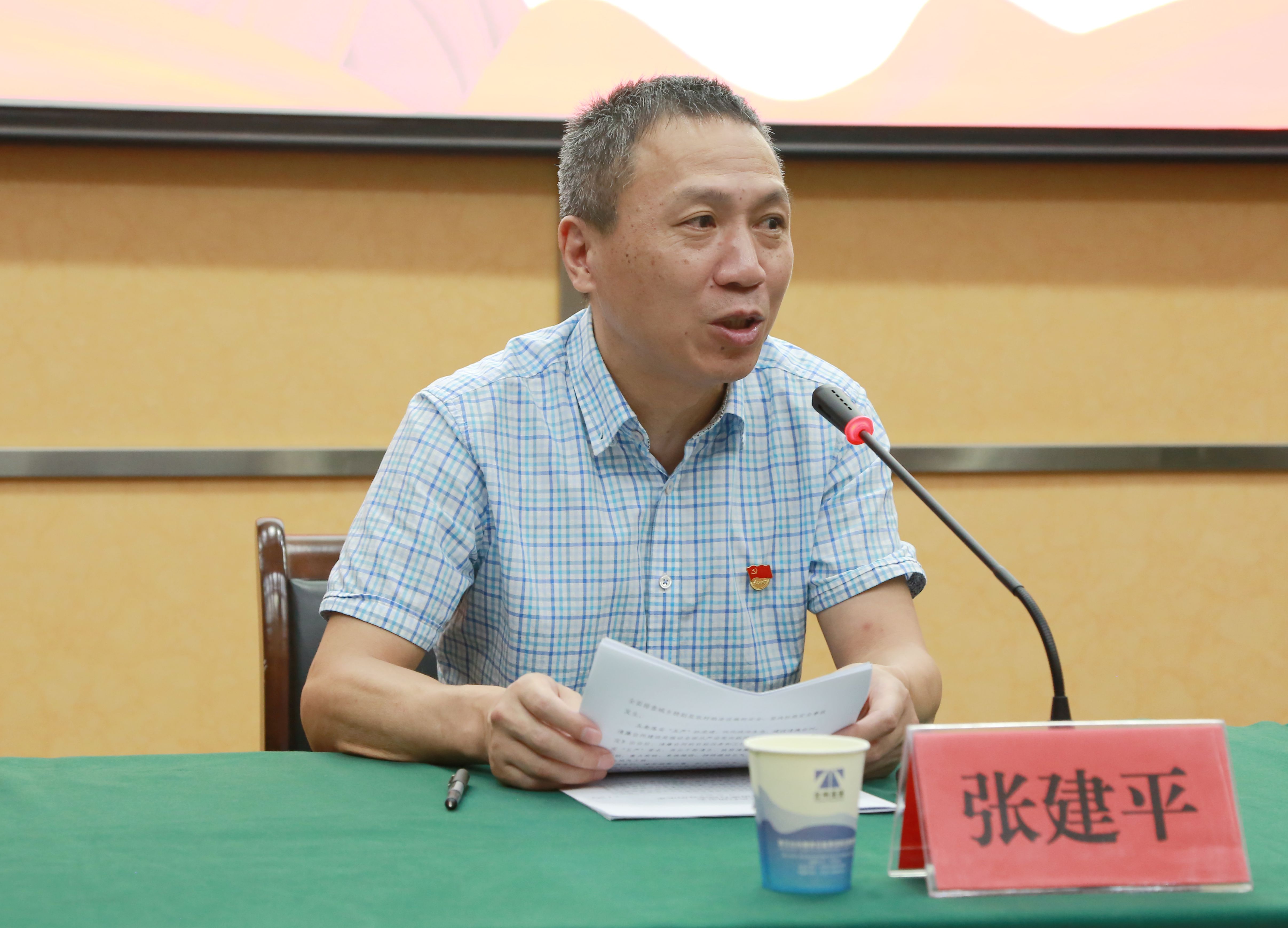 圖為集團(tuán)黨委副書記張建平傳達(dá)文件精神