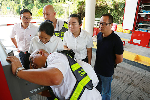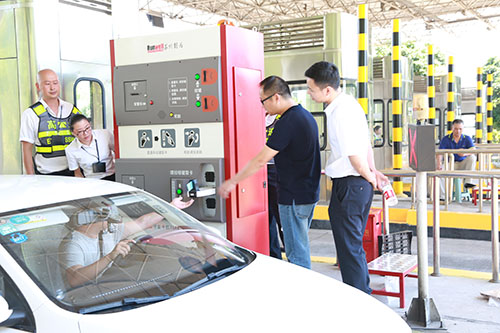 當天天氣雖然異常悶熱,但現場管理員、技術員、收費員悉數到場,確保機器有效運轉。集團副總經理章海峰依次奔赴各所檢查指導機器運行情況。在途中,他一一電話詢問“準備工作如何了,卡票是否裝好”等事宜,在現場,當有司機停靠位置不到位,夠不到通行卡時,章海峰立即取卡、遞卡。他對在場人員強調,要多多學習,在實踐中學懂弄通,盡快熟練掌握發卡機的運作原理和操作流程,服務好過往的司乘人員。各所要合理調配一線員工,做到正常時段管理順暢,應急時段能夠及時反應,有效管好入口車道。